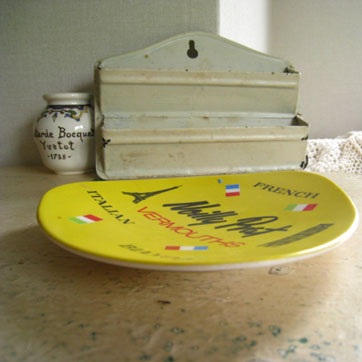 フレンチ・ヴェルモットのトップブランド「ノイリー・プラット」の販促用灰皿です。裏側に、プラスチック耐久性容器PERMAWARE、MADE IN ENGLAND の刻印があります。 表面は、若干のくすみよごれ、わずかなペイントや、焼けヨゴレはありますが、全体にコンデョションは良好です。イギリス製。