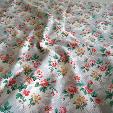 可憐な花柄模様のフレンチファブリック。中くらいの厚さで、さらっとした柔らかな手触り。