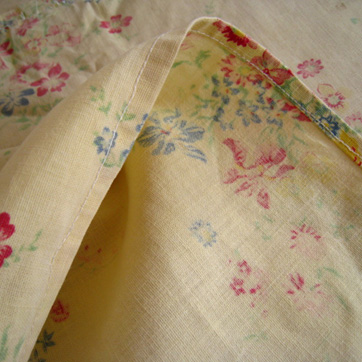 が退色して、よい具合のペールイエロー地になっています。左40x32cmは発色がよく、残りの部分は退色して、色合いが薄くなっていますが、雰囲気があります。1,2箇所のごくごく小さな薄いシミ、小さなホールがありますが、あまり目立ちません。上部の縫い部分に若干の破れはありますが、そのままカットせずにお届けします(その部分は上記のサイズには含まれていません)。その他は全体にきれい