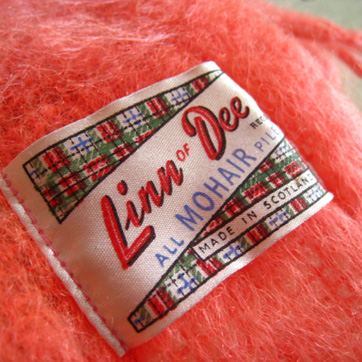 ヴィンテージモヘアのショール。やわらかな手触りです。鮮やかなスモーキーオレンジの色合いがステキです。うっすらとしたグレーのヨゴレが点々と広がっている部分がありますが、その他はよいコンディションです。折りたたんで、ひざ掛けなどにも使えます。スコットランド製。
