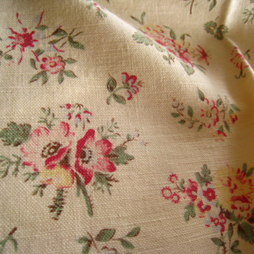 ヴィンテージのフラワーコットンリネンプリント。 ベージュ地に上品で優美な様々な花模様やベリー模様。中薄でとてもやわらかく、さらりと手になじむ手触りです。1,2箇所のごく小さく薄いポツッとしたシミはありますが、ほとんど目立ちません。その他は、特に目立つダメージはなく 、全体に とてもきれいでよいコンデションです 1940年代。フランス製。