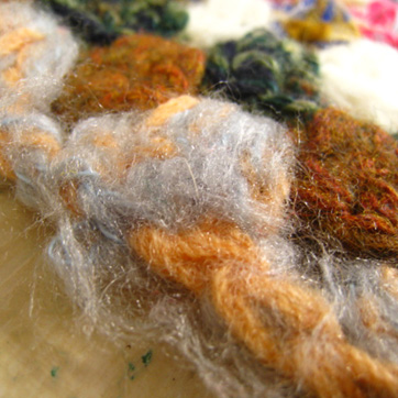 SOLD OUT [SIZE] 約83x88cm [在庫] 1 [材質] ウール [詳細] ヴィンテージウールのハンドニットブランケット。マルチカラーの極太糸で丁寧に編まれています。編むのに相当時間がかかったと思われます。 とても厚みがあり、柔らかな手触り。 端のウールはモヘアのようで毛足が長く味わいがあります。全体的に、フォークロアのラグのようなテイストで趣きがあります。イギリス製。