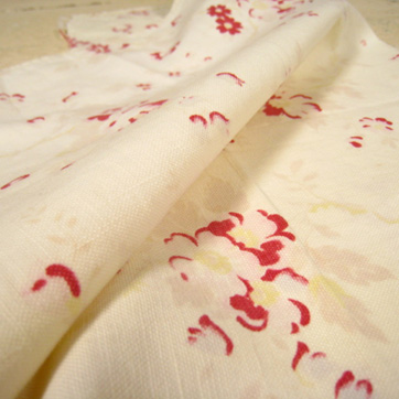 ヴィンテージのコットンフラワープリント。中薄で、さらっとした やわらかな手触り。オフホワイト地に、 可憐なオリジナルのブロッサム柄。色合いが全体にフェードしていてよい雰囲気です。フランス製。