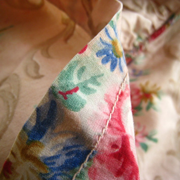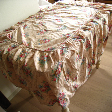してなめらかな手触り。上質の織りで、暖かみのあるピンクベージ地に、優美な絵画のようなイングリッシュローズや花の花束が描かれています