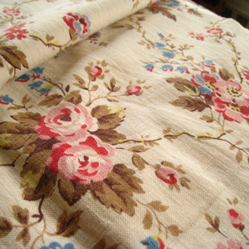 ヴィンテージのフラワーコットンプリント。クリームオフホワイト地に ピンクやマジェンタ、ブルーのサマーブロッサム柄で、発色がよくきれいです。端に1,2箇所のごく小さなネップがありますが、ほとんど目立ちません。中薄でやわらかく、手になじむ手触りです。全体に きれいでよいコンデションです 。 フランス製。