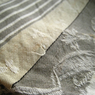 SOLD OUT [SIZE] 43x77 cm [在庫] 1 [材質] コットン しっかりとして丈夫な中厚のティッキングファブリック。 サンドベージュと明るいベージュのストライプ字に、ダマスク織りのような花模様があしらわれています。1,2箇所のごくごく小さなヨレはありますが、端のほうで、ほとんど目立ちません。その他は全体に とてもきれいなコンディションです。フランス製。