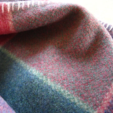 現代の工場での大量生産の製品にはない素朴な色合いや質感は、雨や寒さに強いウェールズ羊の丈夫な毛を使い、第2次大戦以前の手法で染められ、織られた伝統的なウェルシュブランケットならでは。2、3箇所の小さなネップ、