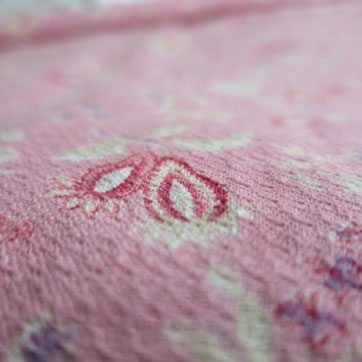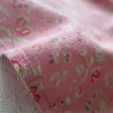 SOLD OUT [SIZE] 135x75cm [在庫] 1 [材質] コットン [詳細] 中厚でさらりとした、しなやかな風合いのプリントファブリック。サーモンピンク地に小花模様。 ちりめんのような起伏のある特徴の織りです。3cm程度の小さなヨゴレがあるほかは全体にきれいでよいコンディションです。イギリス製。
