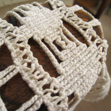 オフホワイトベージュ色の太めで、やわらかなコットン糸で編まれたカーテン。しっかりとした存在感があります。