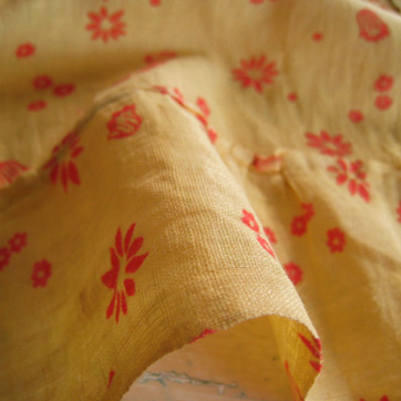 ヴィンテージのコットンフラワープリント。とても薄手で透け感があり、ガーゼのようなテクスチャーで、さらりとかつやわらかな手触り。 イエロー地に、
